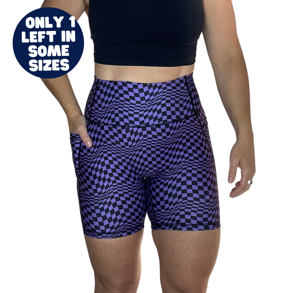 Step up your style with our new 6" Wicked & Twisted Shorts! Featuring a striking black and purple design, these high-rise, squat-proof shorts are perfect for Halloween vibes or year-round wear. With convenient pockets to hold your essentials, they blend bold style and functionality, making them ideal for gym sessions, running, yoga, or everyday adventures. Add a twist of edgy cool to your activewear collection!